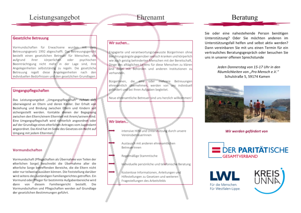 Darüber hinaus begleiten wir ehrenamtliche Betreuer qualifiziert bei ihren Aufgaben.